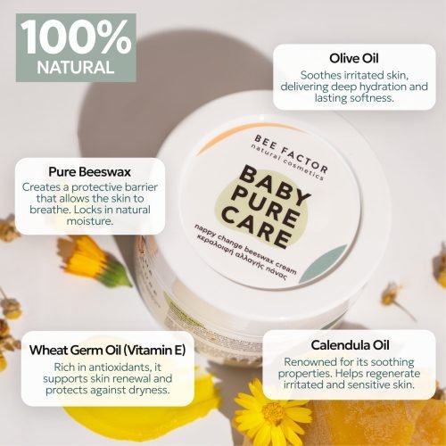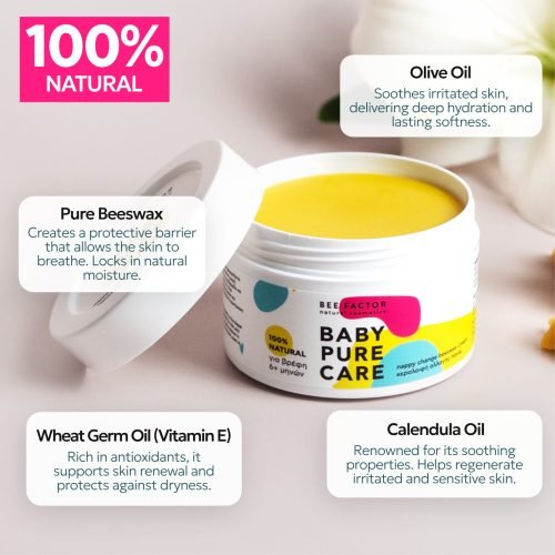 The Pure Care Diaper Rash Balm for babies 6+ months is ideal for protecting your baby’s delicate skin in the diaper area and soothing irritated skin. It nourishes while helping to maintain proper hydration. 100% natural care for your baby’s sensitive skin.