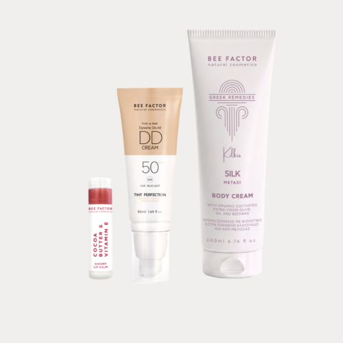 Quick, ready-in-minutes trio with DD cream, body cream & lip balm for instant glow-up.