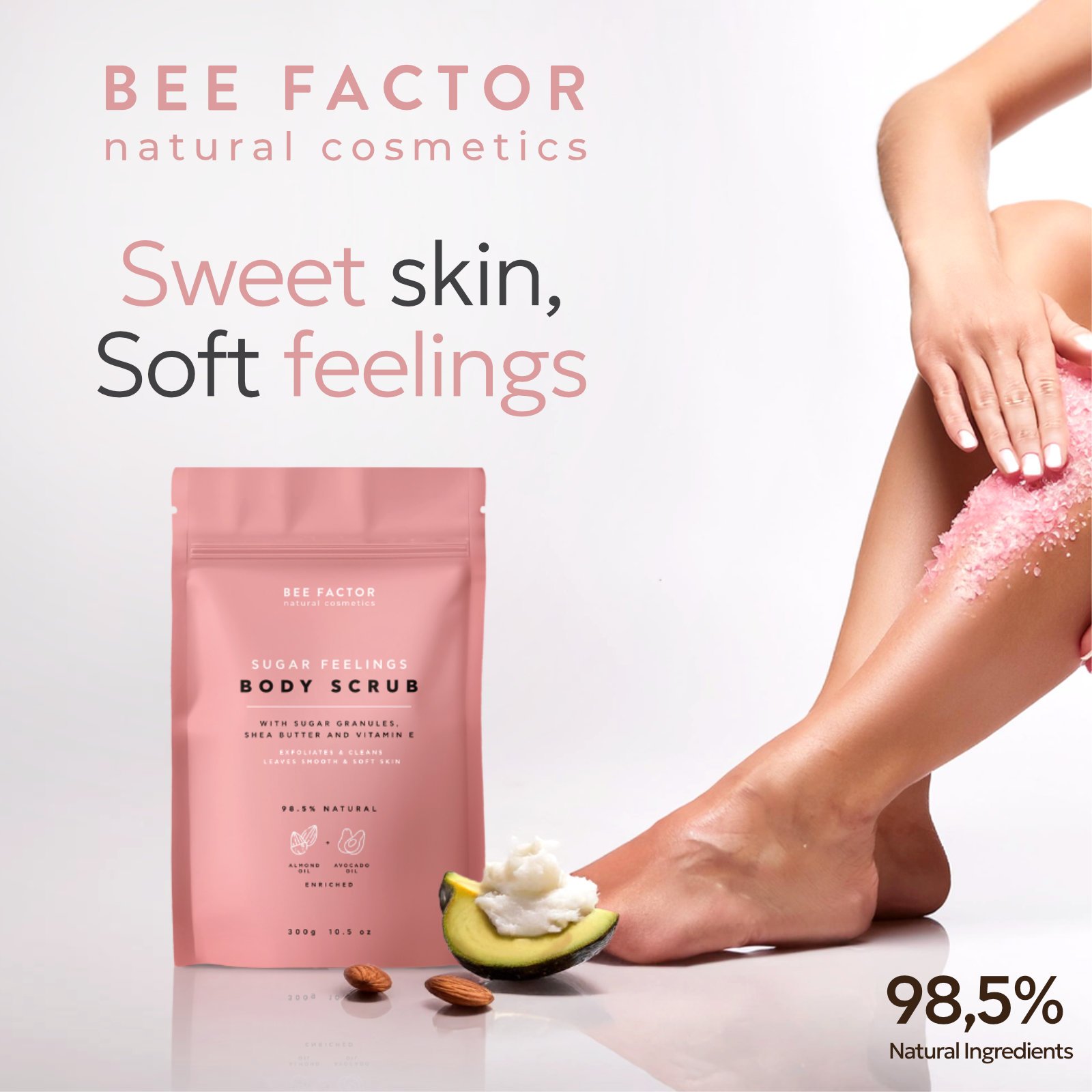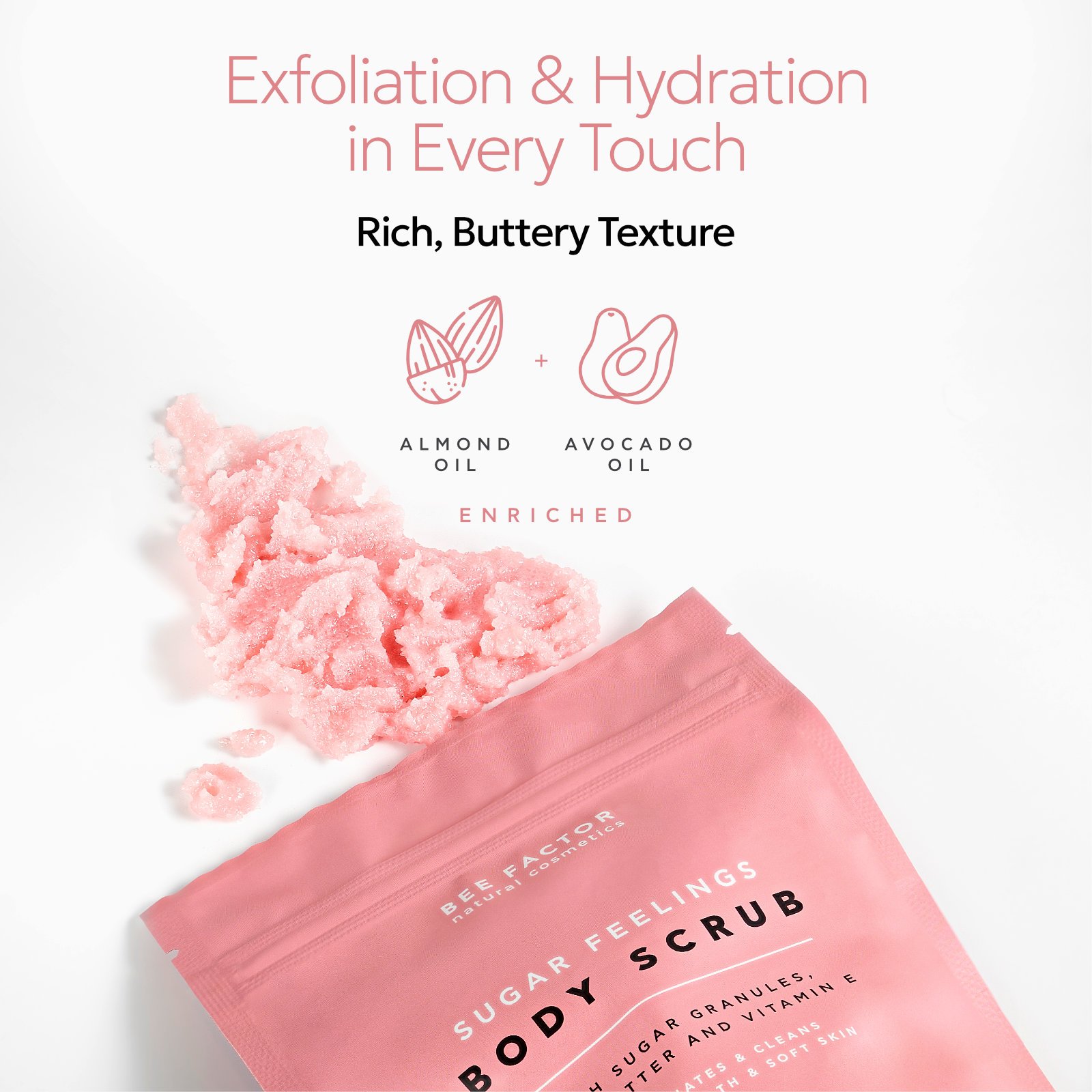 Sugar Feelings Body Scrub is a rich exfoliating body treatment that turns skincare into a moment of pure indulgence. Its formula is based on natural sugar crystals that effectively yet gently remove dead skin cells, revealing smoother, more radiant skin.