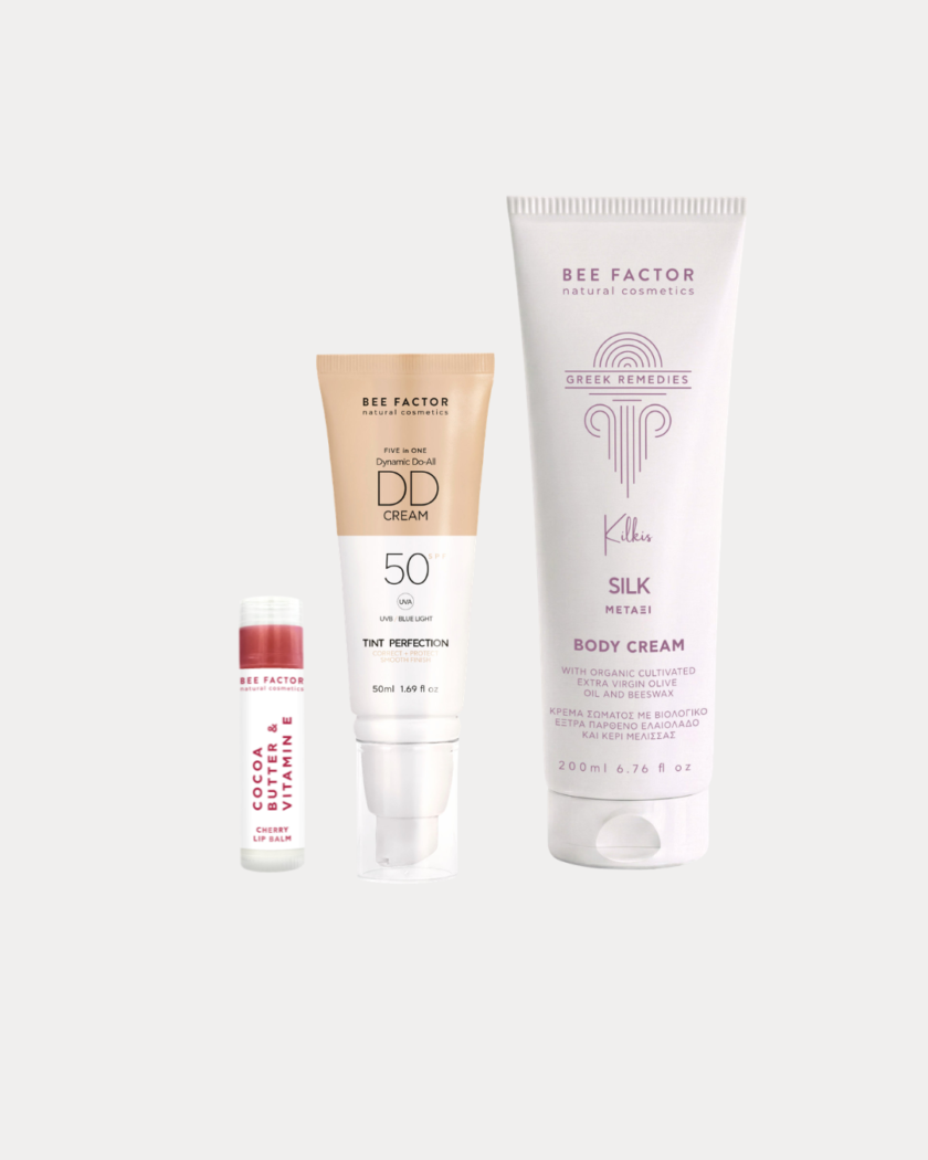 Quick, ready-in-minutes trio with DD cream, body cream & lip balm for instant glow-up.